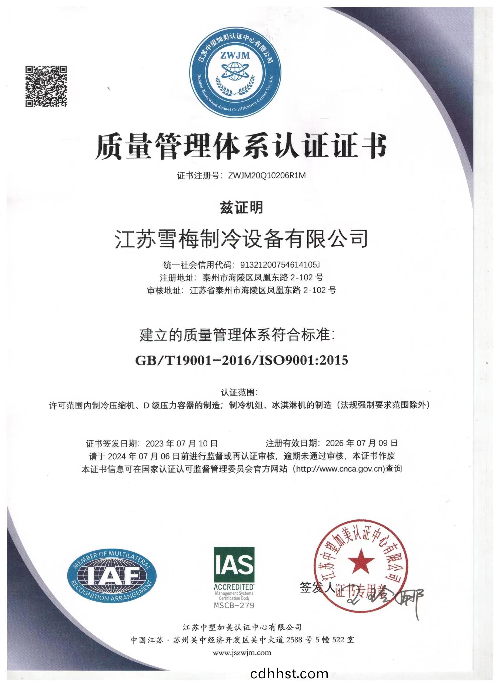 江蘇雪梅制冷設備有限公司